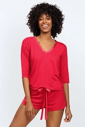 Nocna komplet koszulka + szortDkaren Edith czerwony