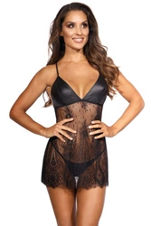 Obsessive Lacrisia chemise Nocna komplet koszulka + stringi, black