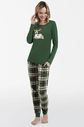 Nocna piżama Italian Fashion Asama dł.r. dł.sp. zielony/druk