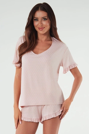 Piżama Italian Fashion Puntini kr.r. kr.sp. druk/pudrowy róż