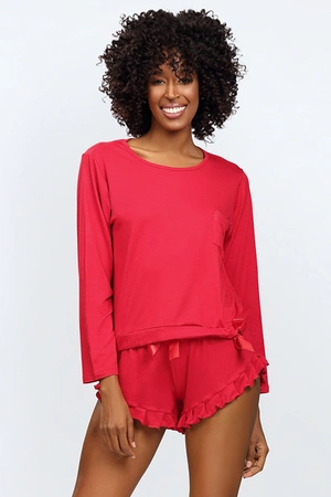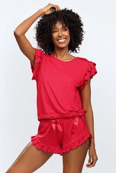 Nocna komplet koszulka + szorty Dkaren Lulu czerwony