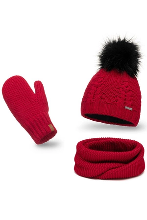 Pamami komplet czapka komin rękawiczki ocieplany czerwony