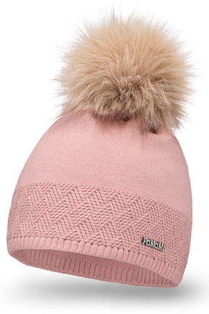 Pamami 17506 czapka prążkowana z pomponem pudrowy róż