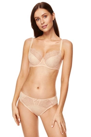 - dolna część misek wykonana z cienkiej pianki gorseciarskiej, a górna z haftu, dzięki czemu biustonosz doskonale dopasowuje się do kształtu piersi