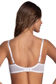 Tył biustonosza wykonany jest ze sprężystej lycry, dzięki czemu biustonosz idealnie dopasowuje się do ciała. Haftka jest dwu- i trzyrzędowa w zależności od rozmiaru, z 3-stopniową regulacją obwodu, co umożliwia dopasowanie do indywidualnych potrzeb.