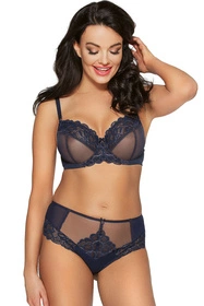 - górna część miseczki oraz mostek wykonane są z koronki przeplatanej złotą nicią