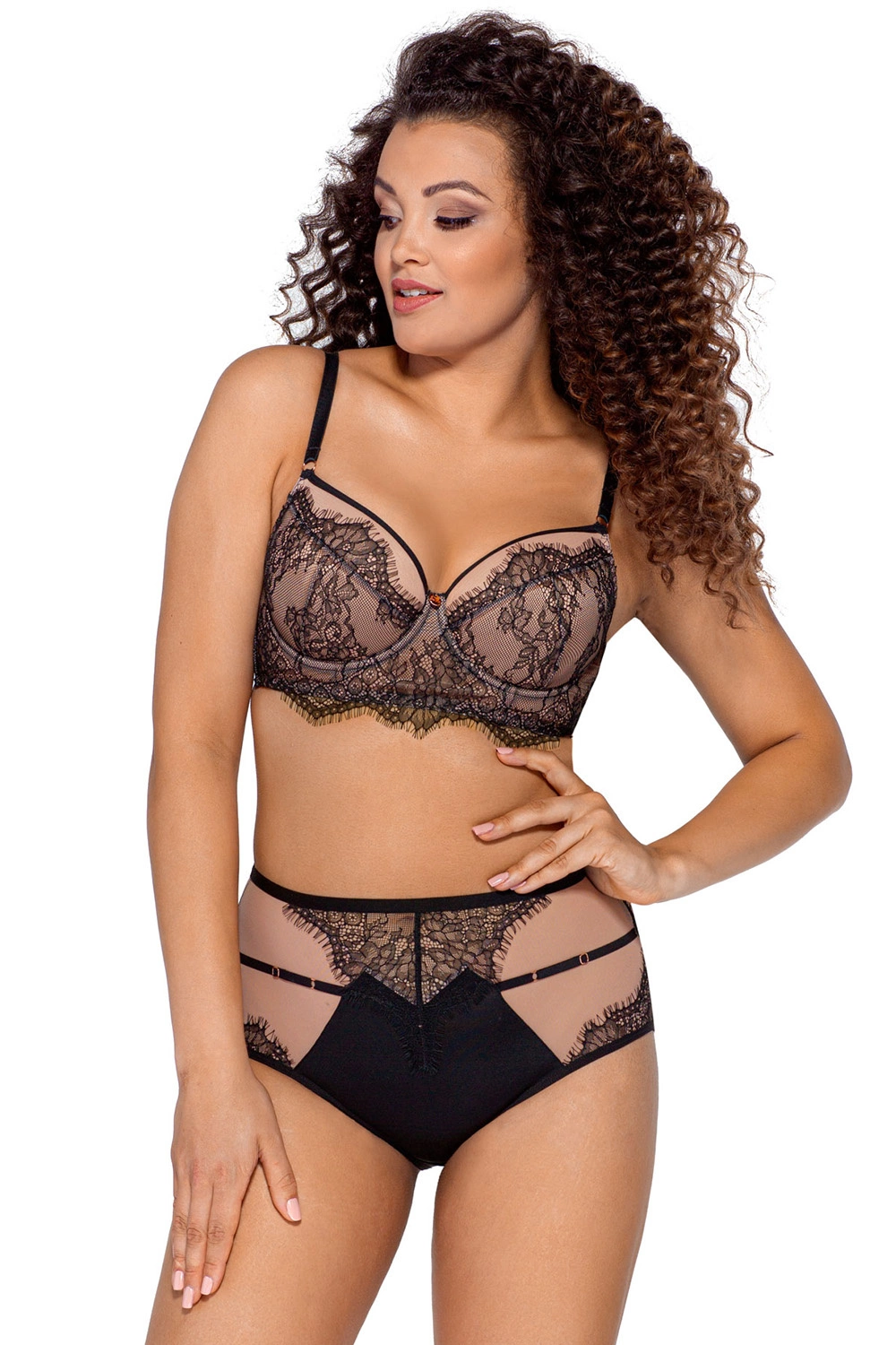 - mostek i boczki wykonane są z beżowej siateczki pokrytej zmysłową koronką