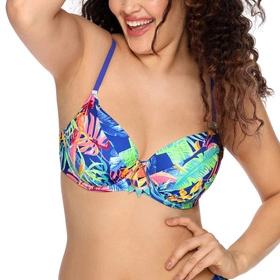 Strój przepiękny, na żywo kolory jeszcze bardziej intensywne niż na zdjęciu. Super leży, mam spory rozmiar bo 75J i świetnie podtrzymywał. To mój już kolejny z tej marki. Byłam nawet pytana gdzie kupiłam. Ale.... po tygodniowych wakacjach w Albanii (morze + basen) bardzo wyblakł. Natychmiast kupiłam nowy, bo naprawdę jest super. Neonowe kolory, które robiły cały efekt całkiem wyblakły i zszarzały. Przykro mi, czuję się mocno zawiedziona. :(