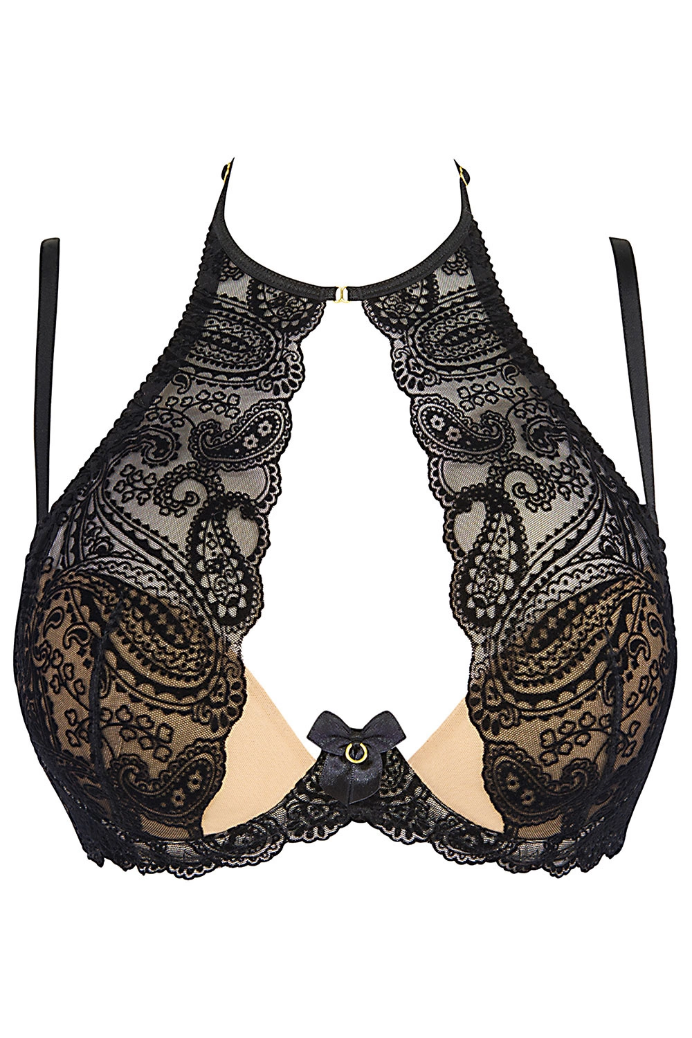 Zmysłowy i bardzo efektowny karmelowo-czarny biustonosz.