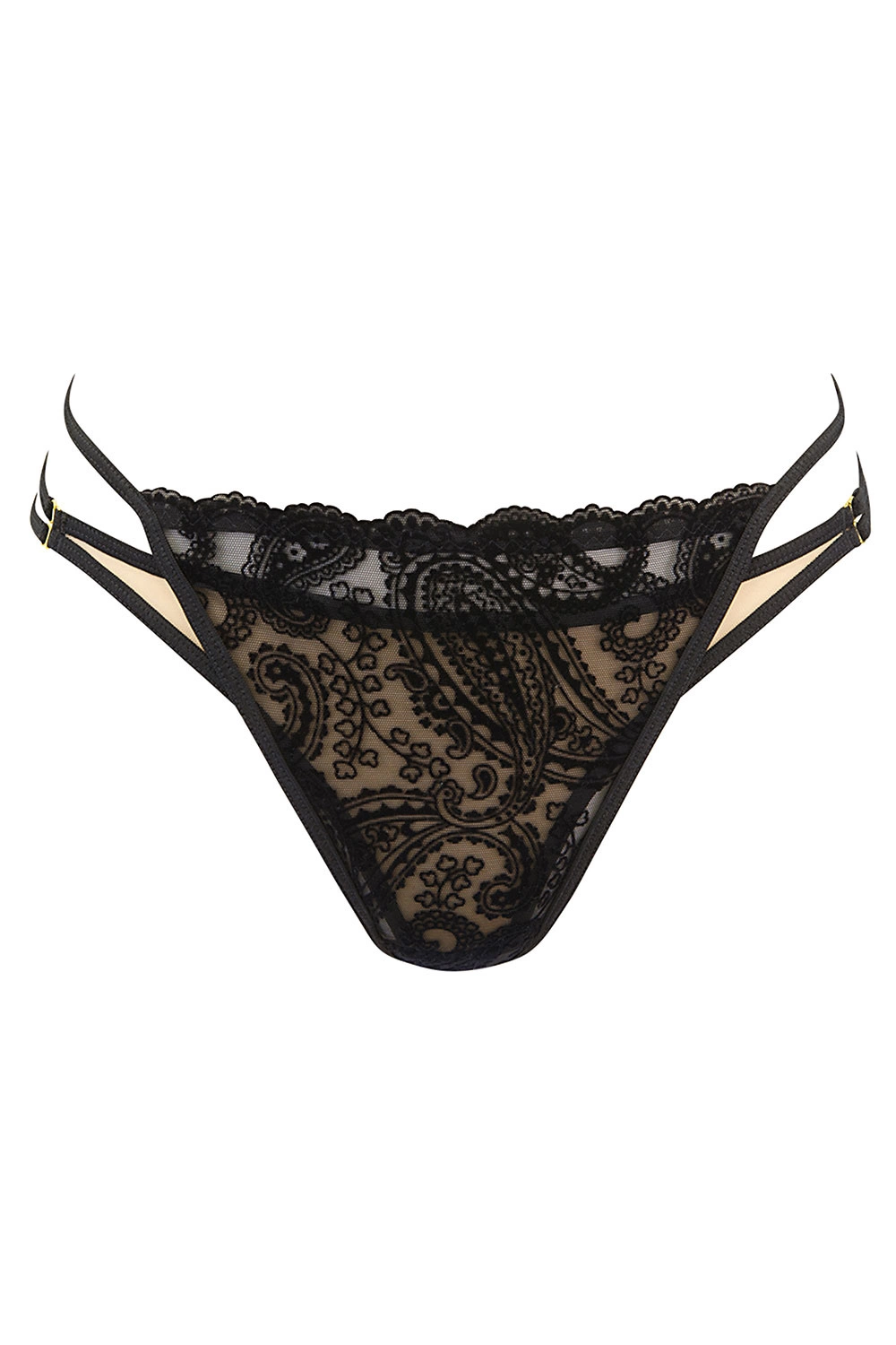 Niesamowicie kobiece i zmysłowe stringi w czarno-karmelowym kolorze.