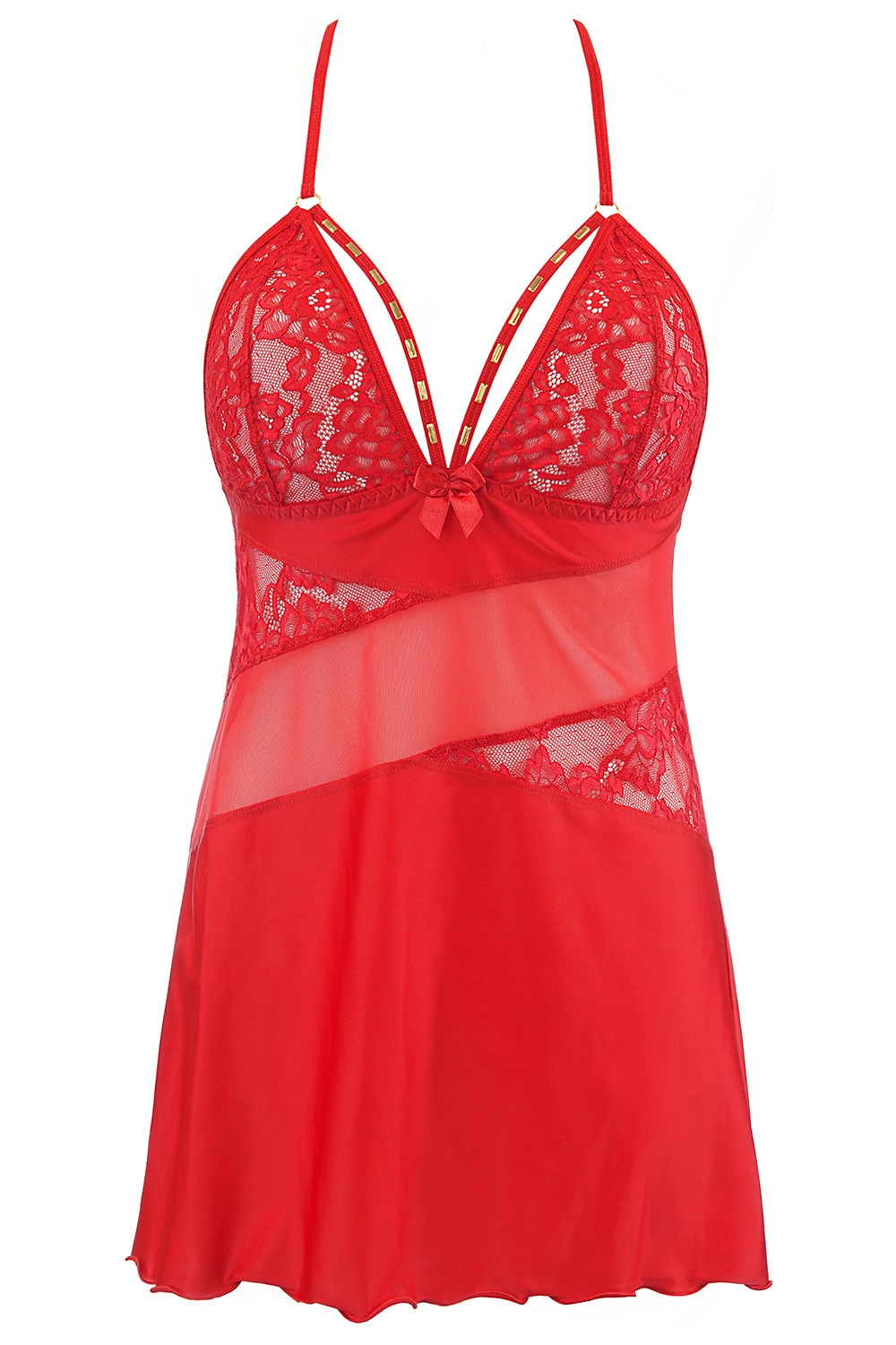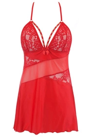 Odkryj w sobie romantyczną nutkę w efektownej, czerwonej koszulce. Całość wykonana z bardzo miękkiej i elastycznej mikrofibry z koronkowymi i tiulowymi wstawkami. Dekolt zdobią paseczki z dodatkami w kolorze złota. Regulowane, nieodpinane ramiączka krzyżują się na plecach.