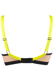 Axami V-11831 to miękki biustonosz na fiszbinach, który łączy lekką konstrukcję z naturalnym podtrzymaniem. Prześwitujące wykończenia dodają wrażenia lekkości, a jednocześnie podkreślają linię dekoltu. Miseczki są nieusztywniane, dzięki czemu model komfortowo dopasowuje się do kształtu biustu. Wąski mostek i gładkie krawędzie sprzyjają estetycznemu wyglądowi pod ubraniem. Ramiączka są regulowane, nieodpinane, z metalowymi elementami, co ułatwia dopasowanie i zwiększa trwałość. Obwód zapinany jest z tyłu na klasyczne haftki, zapewniając stabilność w codziennym noszeniu. Całość wykończono elastycznymi taśmami, które pracują z ciałem i dbają o wygodę. To propozycja dla osób szukających delikatnego, codziennego biustonosza z nutą zmysłowości, odpowiedniego na co dzień i pod lżejsze stylizacje.