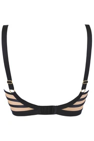Axami V-11841 to lekki, miękki biustonosz na fiszbinach, który łączy subtelną przejrzystość z pełnym haftem na miseczkach. Delikatna siateczka pracuje z ciałem, a fiszbiny nadają piersiom ładny kształt i podtrzymanie bez dodatkowego usztywnienia. Miseczki są w całości pokryte misternym haftem, co podkreśla linię dekoltu i tworzy elegancki efekt. Boczki i tył wykonano z elastycznej siateczki, dzięki czemu obwód pozostaje stabilny i wygodny. Ramiączka są regulowane i nieodpinane, co ułatwia dopasowanie do sylwetki. Z tyłu znajduje się zapięcie na haftki z kilkustopniową regulacją. Metalowe okucia podnoszą trwałość i estetykę wykończeń. Miękkie oblamowania przy skórze zwiększają komfort noszenia przez cały dzień. To model, który sprawdzi się zarówno na co dzień, jak i jako efektowny element bielizny na wieczór.