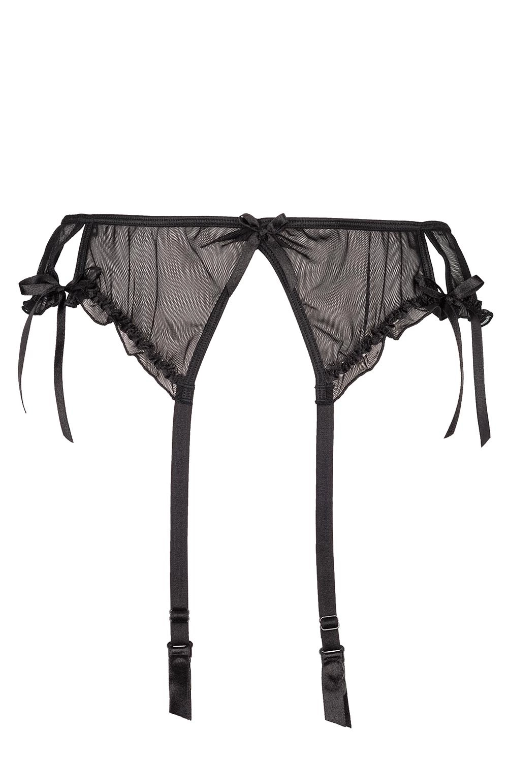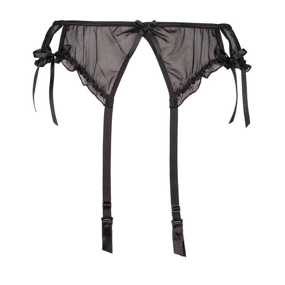 Zmysłowy, czarny pas do pończoch Charbon podkreśli krągłości Twoich bioder. Pas wykonany z delikatnej siateczki tiulowej. Całości uroku dodają zalotne rozcięcia, kokardki i falbanki. Model posiada regulowane, nieodpinane troczki oraz trzystopniowe zapięcie na dwie haftki.