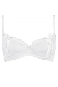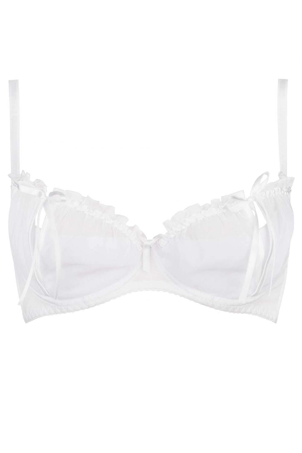 Zmysłowy, śnieżnobiały półbiustonosz Neige kusi ekscytującymi rozcięciami na miseczkach. Biustonosz wykonany z delikatnej siateczki tiulowej, która pozwala jeszcze bardziej wyeksponować Twoją kobiecość. Całości uroku dodają zalotne kokardki. Model posiada fiszbiny pionowe, regulowane, nieodpinane ramiączka oraz trzystopniowe zapięcie na dwie haftki.
