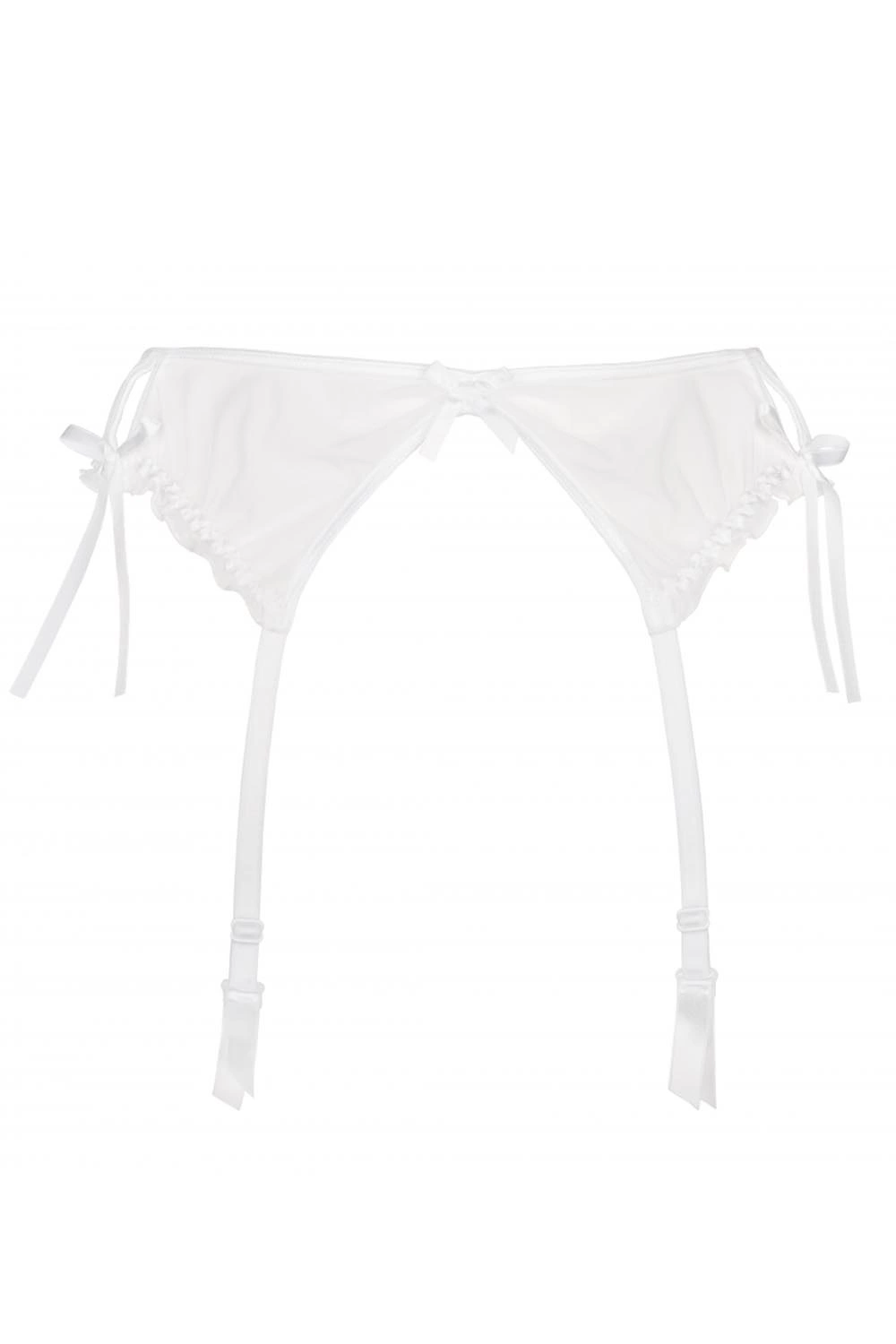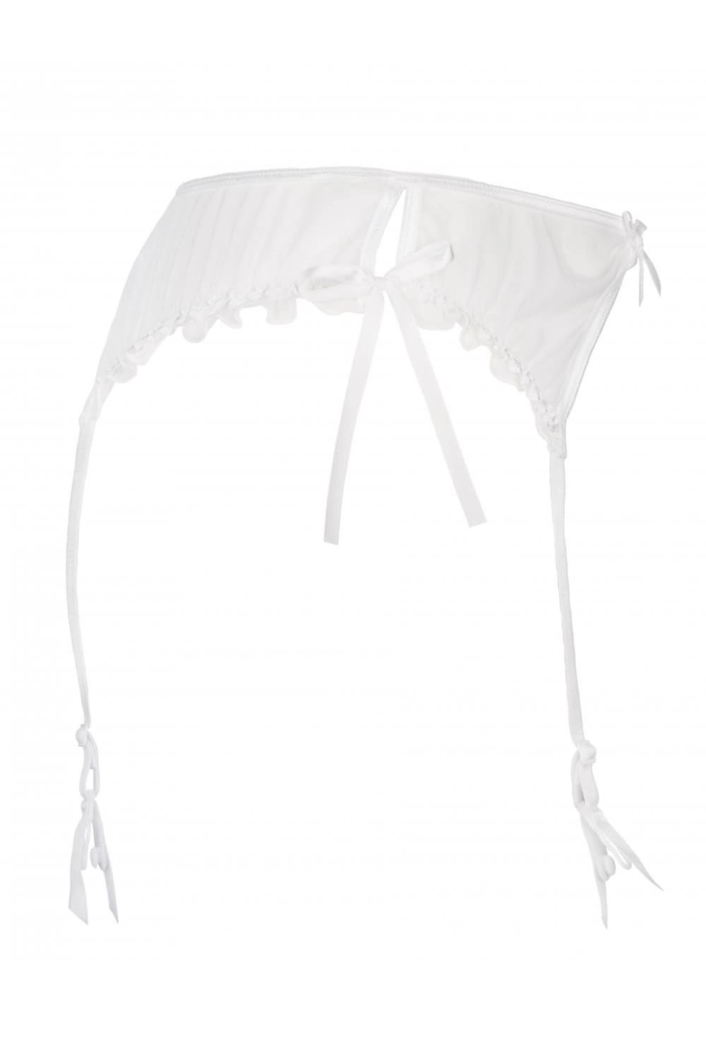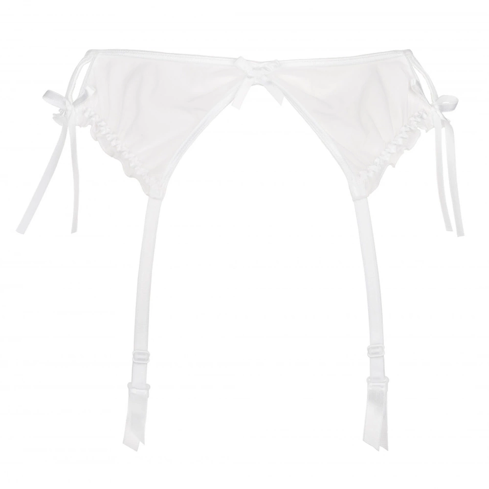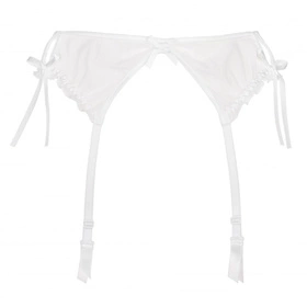 Zmysłowy, śnieżnobiały pas do pończoch Neige podkreśli krągłości Twoich bioder. Pas wykonany z delikatnej siateczki tiulowej. Całości uroku dodają zalotne rozcięcia, kokardki i falbanki. Model posiada regulowane, nieodpinane troczki oraz trzystopniowe zapięcie na dwie haftki.