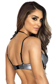 Intrygujący biustonosz półusztywniany zaskakuje magnetyzującym, srebrzystym błyskiem tkaniny
