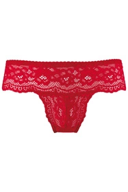 Nieodzowny element do kompletu z biustonoszem V-9531 to stringi typu brazyliany w odcieniu szkarłatnym, miękkie, wygodne, a przede wszystkim urzekające perfekcyjnym cięciem podkreślające linię pośladków. W całości wykonane z wysokiej klasy koronki z bawełnianym klinem dla twojego komfortu.
