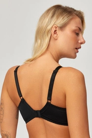 Azal Sara to miękki biustonosz dla osób szukających naturalnego kształtu i pewnego podtrzymania. Miseczki bez usztywnienia pracują z ciałem, a fiszbiny stabilizują biust, zapewniając codzienny komfort. Gładkie wykończenia i płaskie szwy sprzyjają dyskrecji pod ubraniem. Ramiączka są regulowane, niewypinane, z metalowymi elementami zwiększającymi trwałość. Zapięcie z tyłu na haftki pozwala dopasować obwód do sylwetki. Materiał jest przyjemny w dotyku i wspiera dobrą cyrkulację powietrza. To praktyczny model do noszenia na co dzień, który łączy wygodę, lekką konstrukcję i stabilne podtrzymanie. Sprawdzi się pod T-shirty, koszule i lekkie swetry, gdy zależy Ci na prostocie i funkcjonalności.