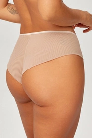 Azal Sara to brazyliany z wysokim stanem, które łączą gładką dzianinę z koronkowymi wstawkami, dając efekt lekkości i subtelnego podkreślenia sylwetki. Półprzezroczyste partie dodają finezji, jednocześnie pozostając komfortowe na co dzień. Wysoki stan dyskretnie wygładza okolice talii i zapewnia stabilne dopasowanie. Krój brazylijski z tyłu optycznie zaokrągla pośladki i podkreśla ich kształt. Elastyczne wykończenia miękko pracują z ciałem i nie krępują ruchów. Materiał jest sprężysty i miły dla skóry, z dodatkiem elastanu dla lepszego dopasowania. To model, który sprawdzi się zarówno pod sukienkę, jak i do codziennych stylizacji, oferując wygodę i estetyczne wykończenie.