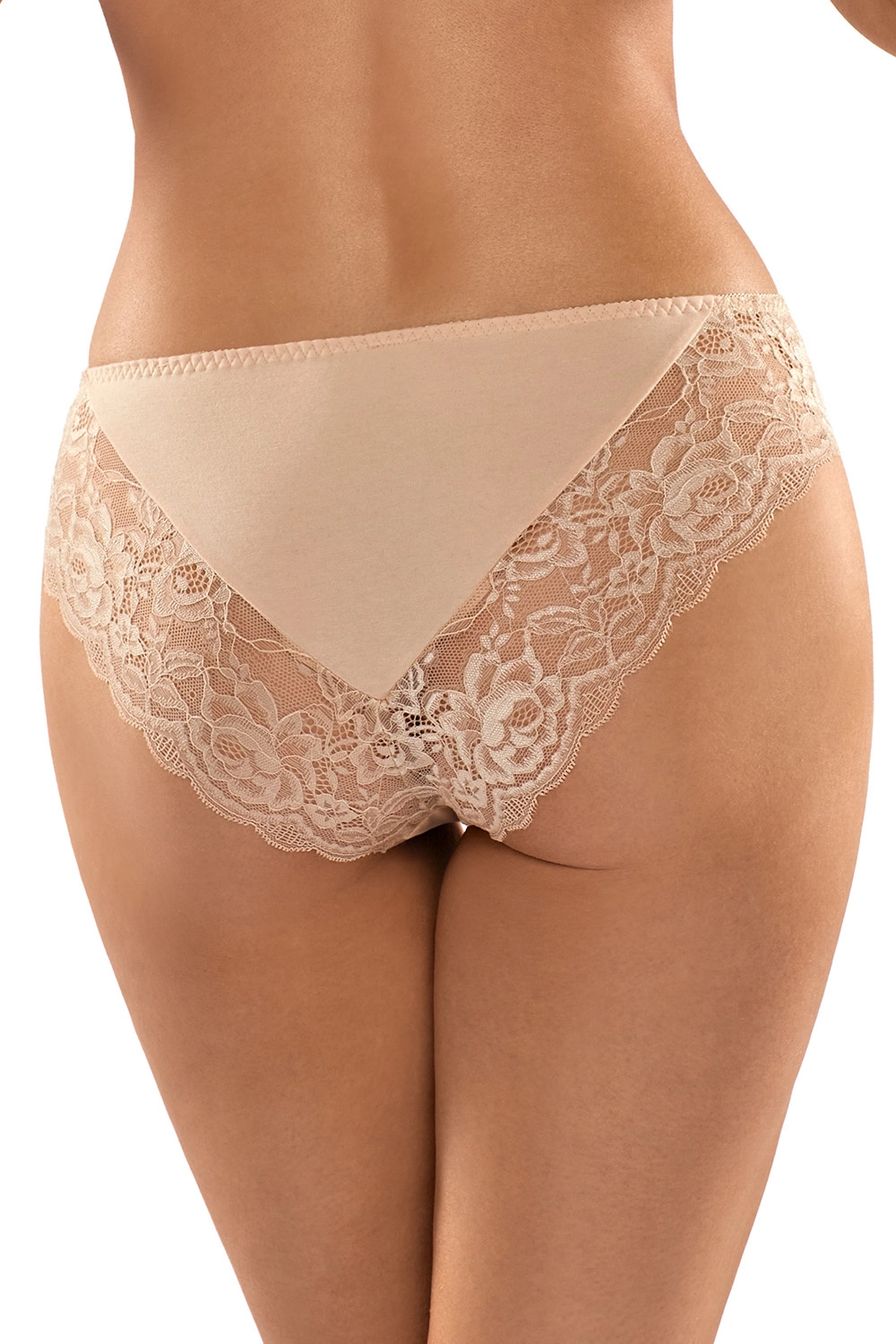 Elegancka koronka znajduje się zarówno z przodu, jak i z tyłu, dzięki czemu majtki pięknie podkreślają pośladki.