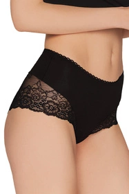 Klasyczne figi damskie z kwiatową koronką. Wykonane z bawełny, wykończone elegancką gumeczką w pasie.Koronkowe dodatki znajdziecie zarówno na pupie jak i z przodu majtek- to sprawia, że figi prezentują się niezmiernie elegancko.Delikatne, płaskie szwy majtek są niewyczuwalne w codziennym noszeniu.