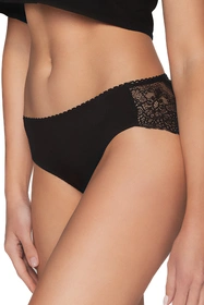 Bawełniane figi Babell 161 to idealna codzienna propozycja bielizny damskiej. Elegancka koronka na pupie delikatnie podkreśla pośladki, przód majtek jest gładki. W pasie doszyta została delikatna gumeczka, dzięki której figi nie rolują się na brzuchu.