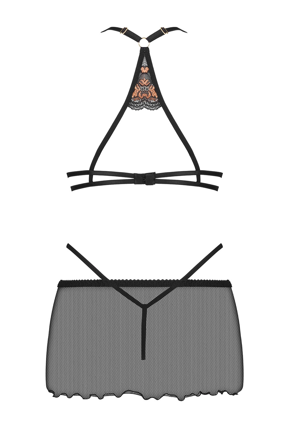 Zmysłowy komplet Beauty Night Goldie łączy lekką koszulkę na ramiączkach i dopasowane stringi, podkreślając naturalne kształty. Elastyczny, przyjemny w dotyku materiał miękko układa się na sylwetce i pracuje z ciałem. Krótka długość oraz smukłe ramiączka subtelnie eksponują ramiona i linię dekoltu. Ramiączka są regulowane, co pozwala łatwo dopasować wysokość i podtrzymanie, a metalowe detale dodają całości elegancji. Z tyłu zastosowano praktyczne zapięcie na haftki, które ułatwia zakładanie i stabilizuje górną część koszulki. Gładkie, estetyczne wykończenia podnoszą komfort noszenia, ograniczając ryzyko podrażnień. W zestawie znajdują się stringi, tworzące spójny komplet na wieczór. To propozycja na chwile we dwoje oraz jako elegancki element bielizny nocnej, gdy liczy się wygoda i kobiecy charakter.