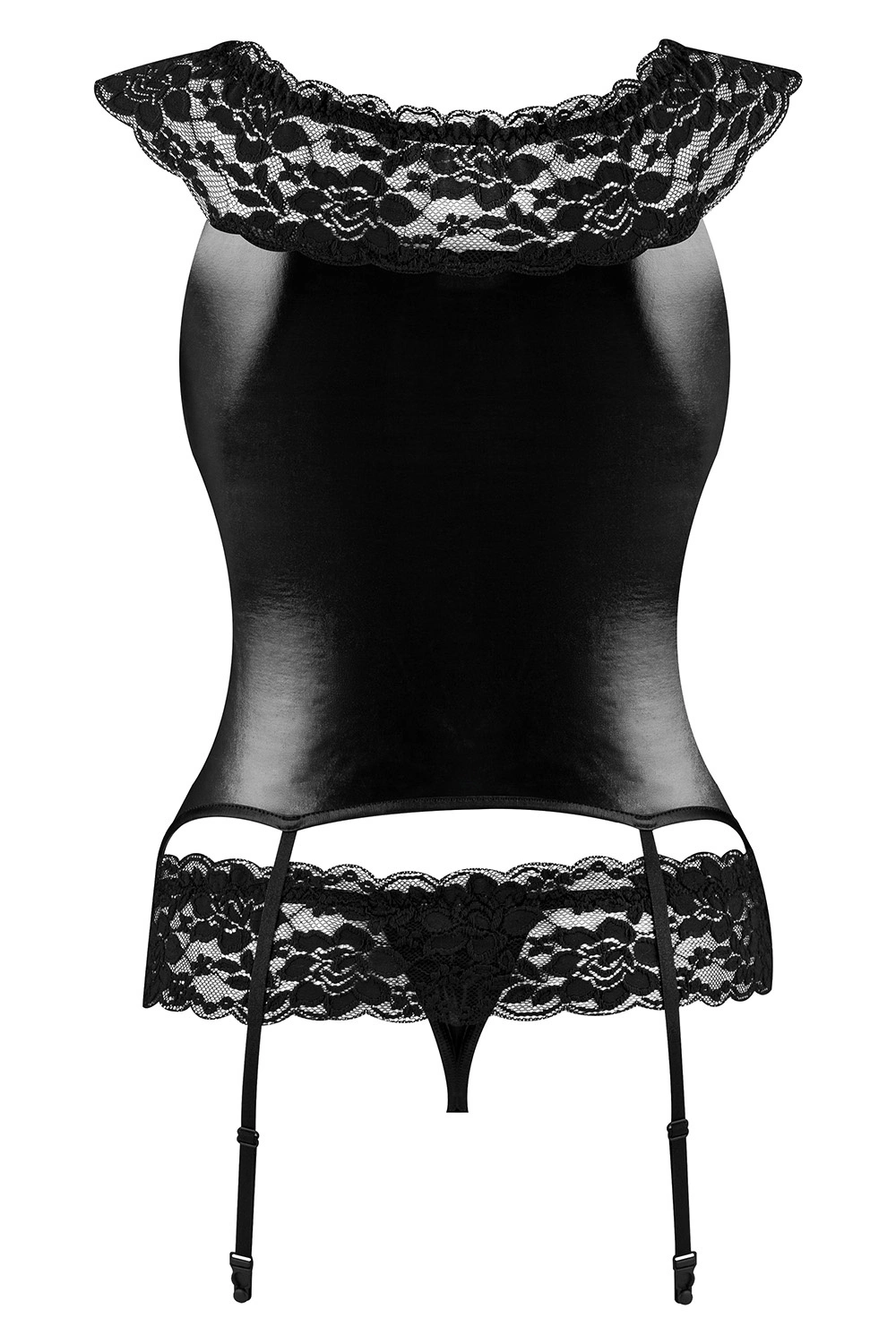 - 3-częściowy komplet: koszulka, stringi, pas do pończoch