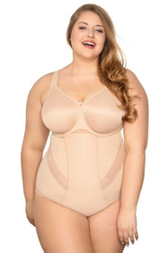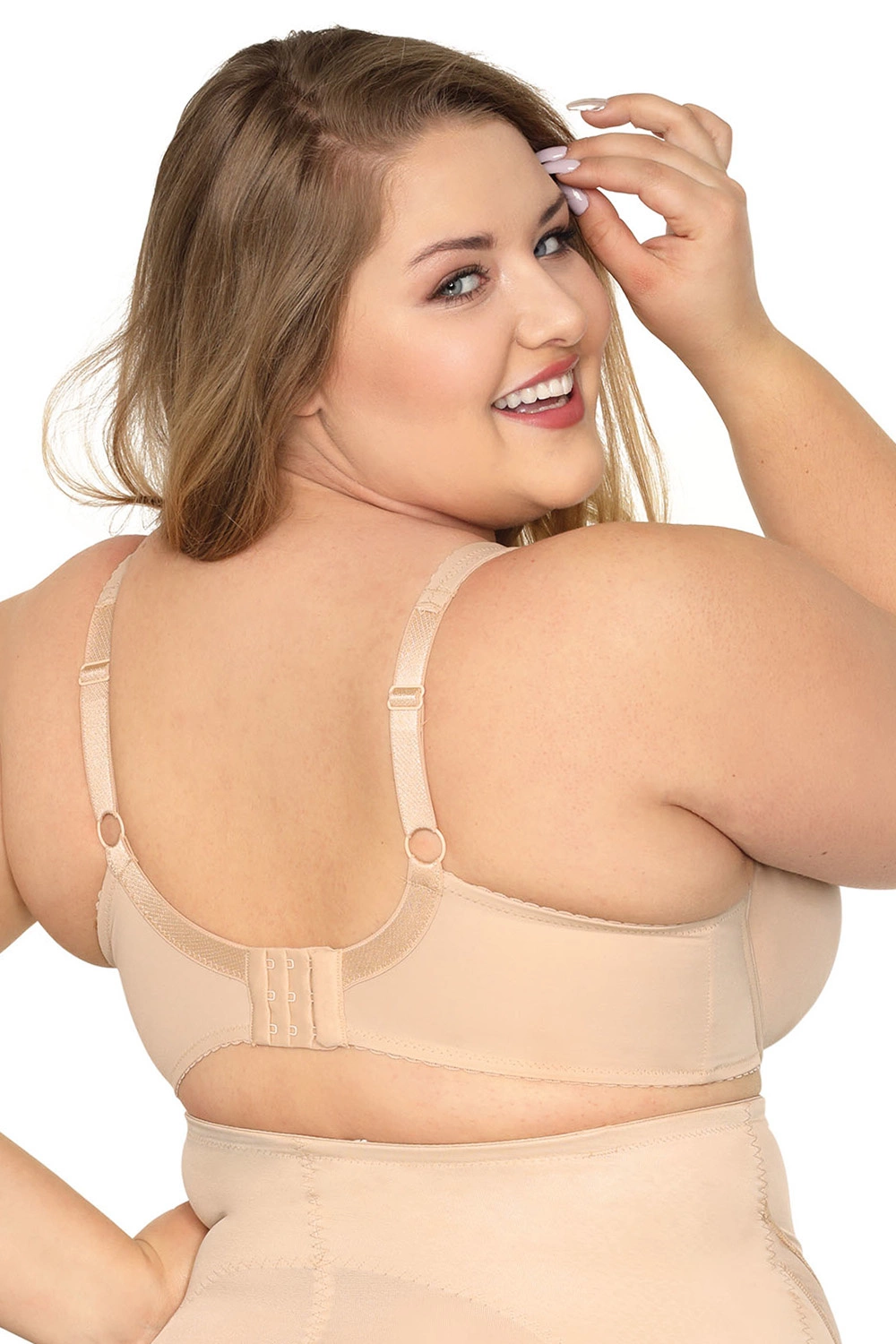 Krój mocno zabudowany, doskonale zbierający biust, optycznie zmniejszający jego wielkość.