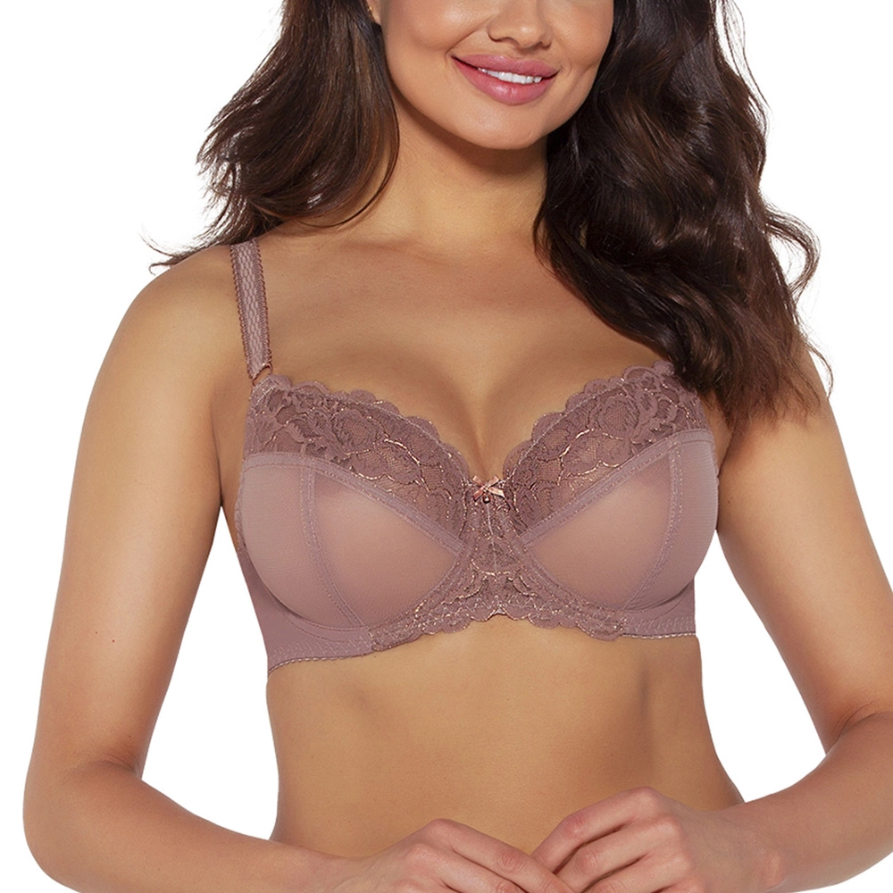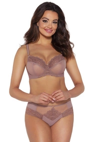 - górna część miseczki oraz mostek wykonane są z koronki przeplatanej złotą nicią