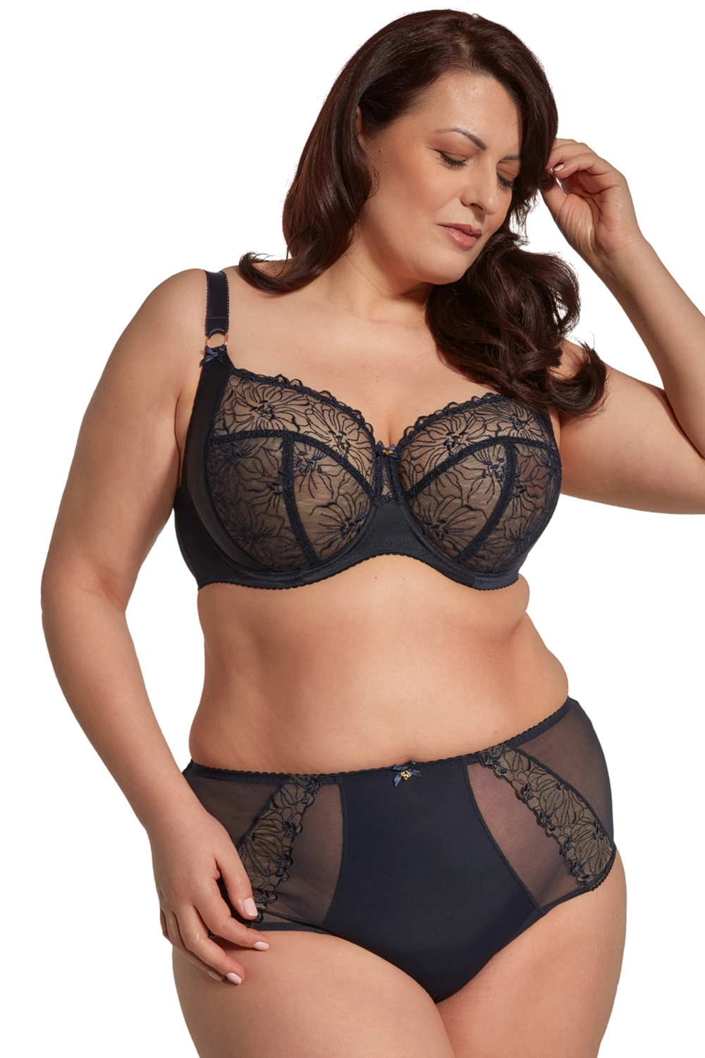 Biustonosz miękki Bella Misteria 18-33 Subtelna Pokusa to model, który łączy w sobie granatowy kolor z luksusowym haftem. Wysoki mostek, gładki tył oraz boczne fiszbiny to cechy, które gwarantują doskonałe dopasowanie do każdej sylwetki. Nieodpinane ramiączka dopełniają całości, tworząc eleganckie i wygodne rozwiązanie na co dzień.