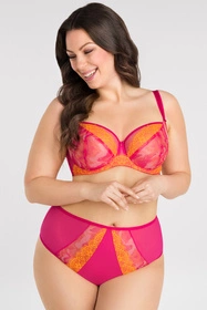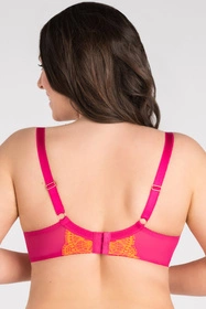 - górna część miseczki, mostek oraz tył ozdobione są pomarańczową koronką