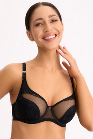 Półusztywniany biustonosz Bella Misteria łączy stabilne podtrzymanie z subtelną lekkością. Konstrukcja z fiszbinami dobrze modeluje i unosi, a dolna część miseczek zapewnia pewne wsparcie na co dzień. Górny panel wykonany z delikatnej koronki miękko dopasowuje się do piersi, dodając lekkości i kobiecego charakteru. Pionowe fiszbiny boczne stabilizują obwód i pomagają utrzymać formę przez cały dzień. Zapięcie na haftki z tyłu ułatwia dopasowanie, a ramiączka są regulowane i nieodpinane. Metalowe elementy przy ramiączkach zwiększają trwałość i estetykę. Gładkie wykończenia przy mostku i krawędziach dbają o komfort pod ubraniem. To wygodna propozycja do codziennych stylizacji, która łączy funkcję i elegancję. Sprawdzi się zarówno pod koszulę, jak i ulubiony sweter, oferując stabilność, którą czuć przez cały dzień.