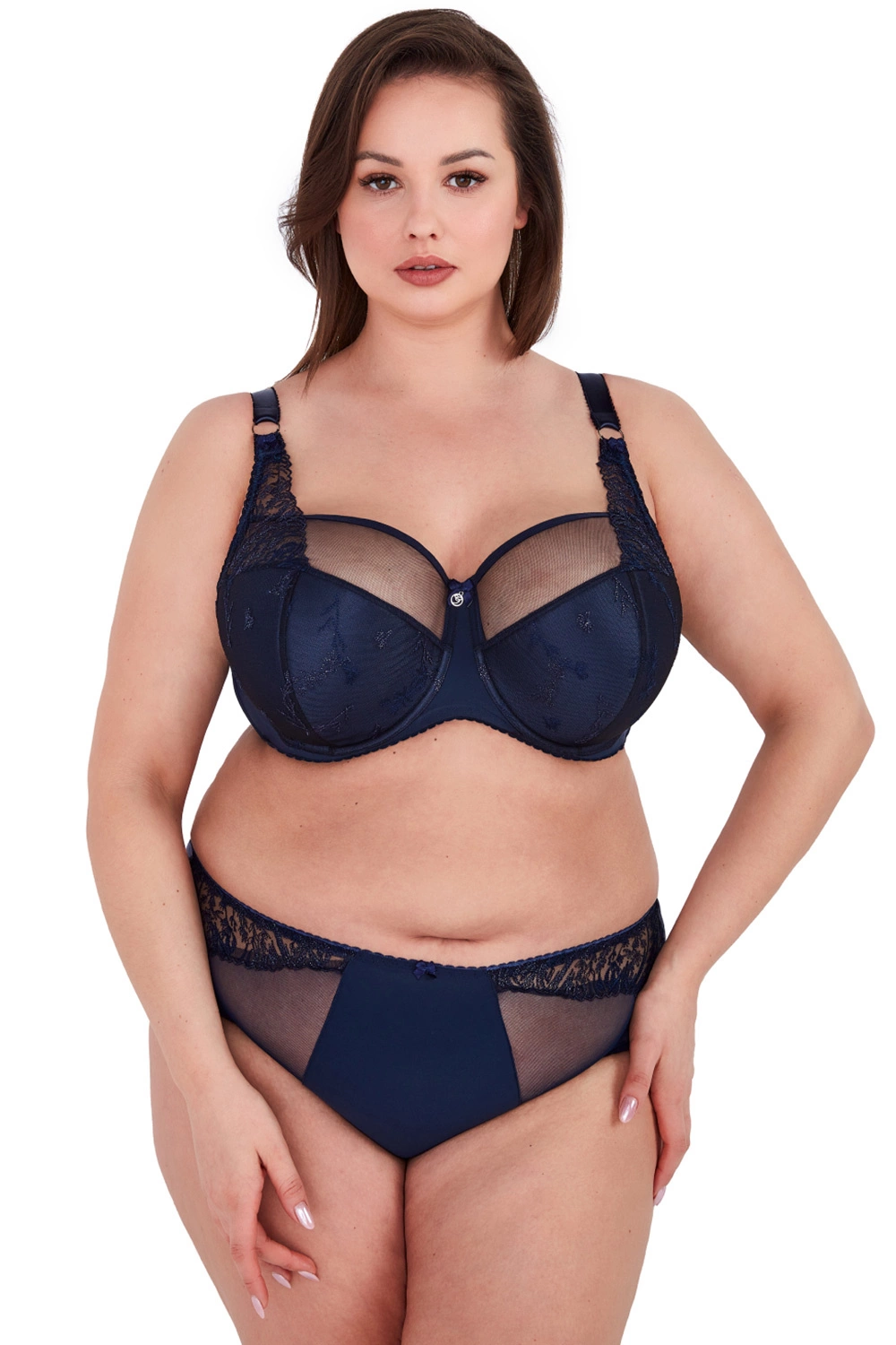 Elegancki półusztywniany biustonosz w granatowym kolorze.