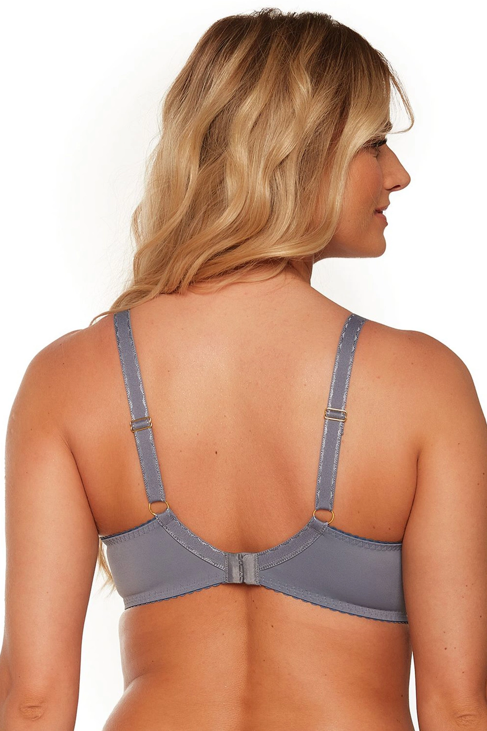 Stylowy półusztywniany biustonosz w szarym kolorze.