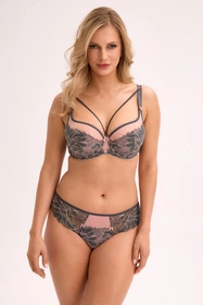 Gaia 1318 Priya to półusztywniany biustonosz, który łączy stabilne podtrzymanie z przyjemnym w dotyku wykończeniem. Dolne partie miseczek są lekko usztywnione, a górna część z delikatnej koronki dopasowuje się do kształtu piersi, podkreślając naturalną linię. Fiszbiny pomagają unieść i wyprofilować biust, dając poczucie pewności w ciągu dnia. Regulowane ramiączka ułatwiają precyzyjne dopasowanie, a nieodpinana konstrukcja zapewnia stałą stabilność. Zapięcie na haftki z tyłu jest praktyczne i pozwala na wygodne zakładanie. Metalowe elementy przy ramiączkach podnoszą trwałość i estetykę. Gładkie boki oraz miękkie od wewnątrz miseczki dbają o komfort skóry. Subtelne koronkowe wykończenia nadają całości elegancki charakter. Model sprawdzi się zarówno na co dzień, jak i pod bardziej odświętne stylizacje, tworząc zgrabny, naturalny kształt piersi. To wybór dla osób szukających równowagi między lekkością, wsparciem i estetyką.