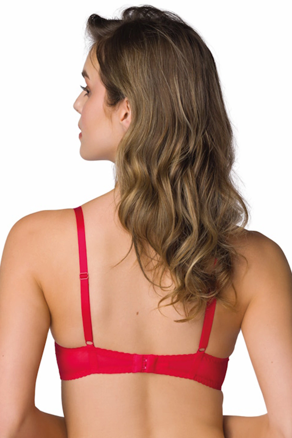 Elegancki biustonosz typu push-up w czerwonym kolorze.