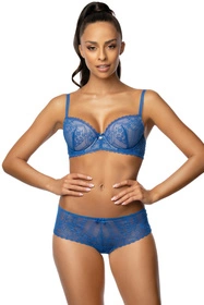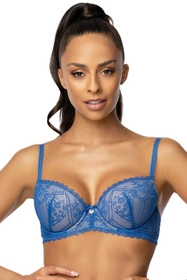 Kobiecy biustonosz typu push-up w niebieskim kolorze.