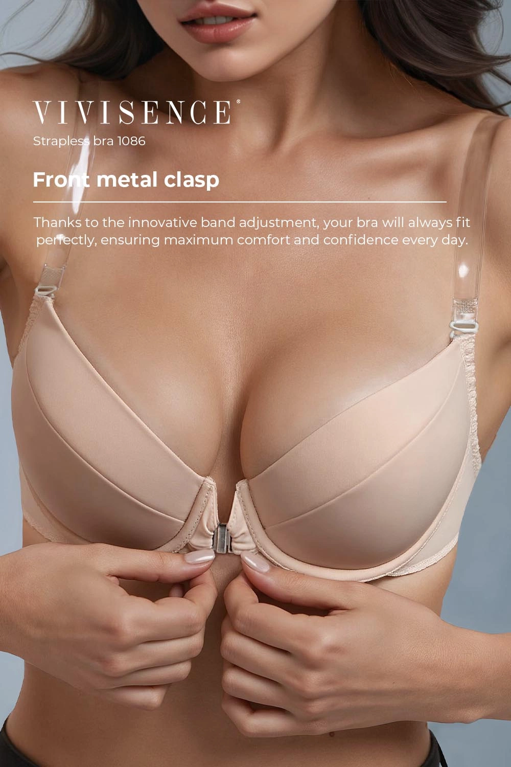 Specjalistyczny biustonosz typu push-up do kreacji z odkrytymi plecami.