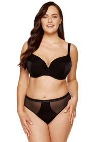 Elegancki usztywniany biustonosz w czarnym kolorze.