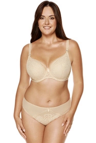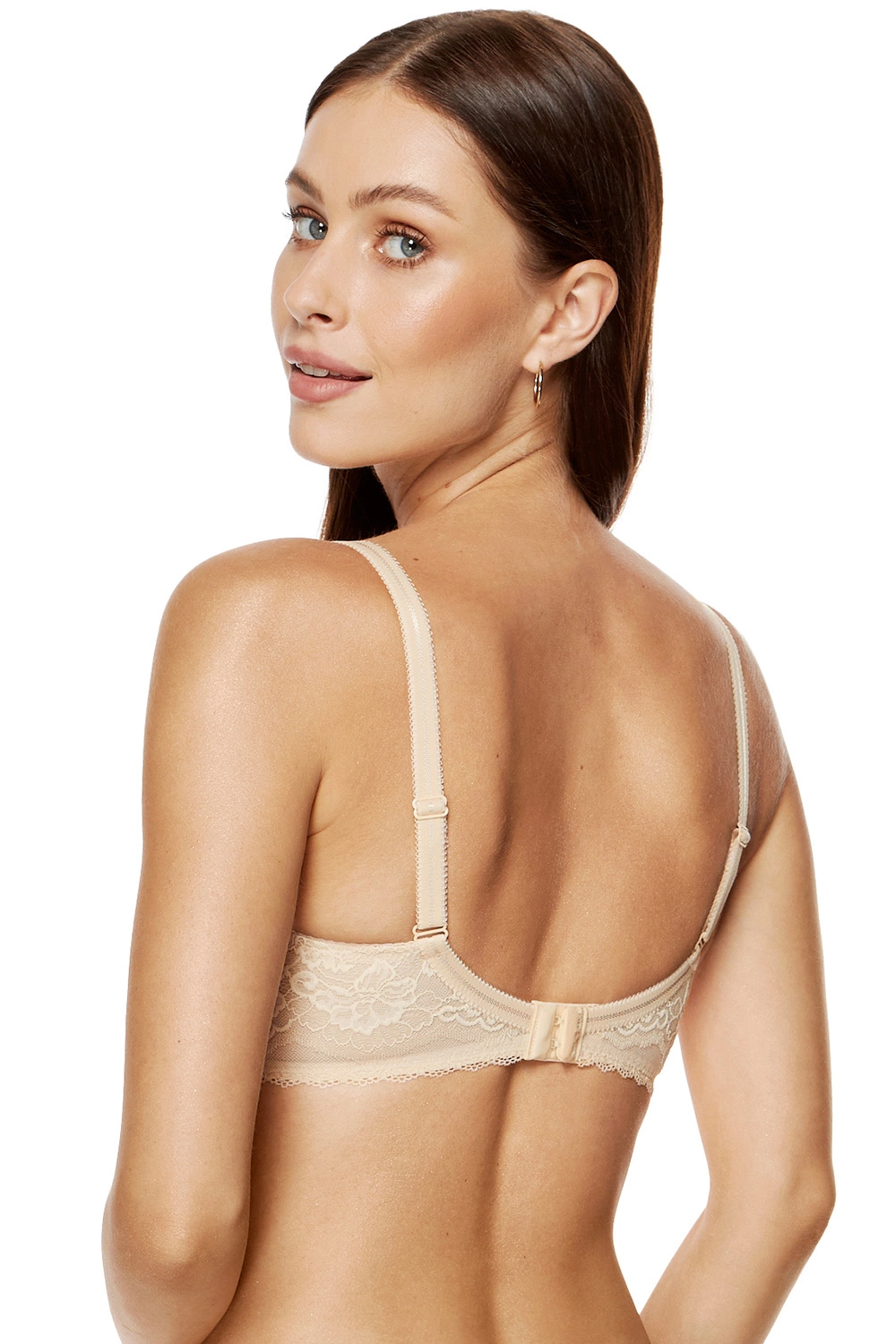 - wzmocnienie z bawełny wyprowadzone spod piersi aż na ramiączko zbiera biust spod pachy, lekko unosi i podtrzymuje