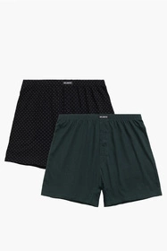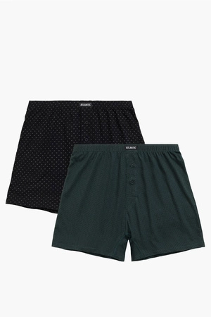 W opakowaniu znajdują się dwie sztuki bokserek męskich w różnych kolorach i wzorach.