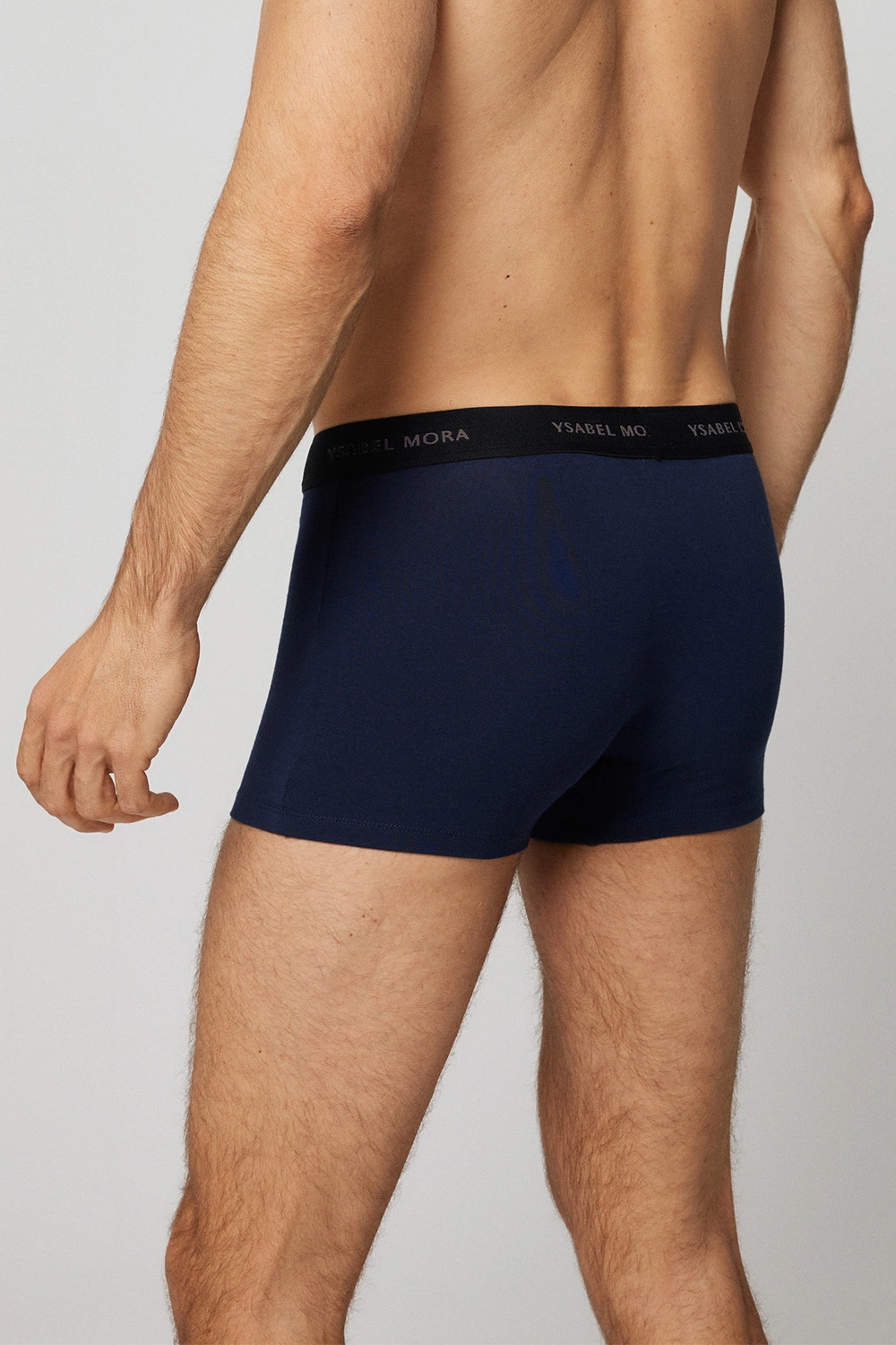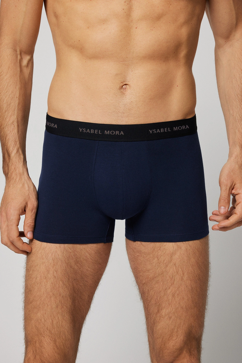 W opakowaniu znajdują się pary bokserek męskich w różnych kolorach.