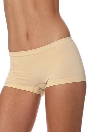 Bokserki damskie COMFORT COTTON przeznaczone dla aktywnych kobiet do codziennego użytku. Bieliznę termoaktywną wykonano z dwuwarstwowej dzianiny w technologii bezszwowej (seamless). Wewnętrzna, konstrukcyjna warstwa została stworzona z delikatnych mikrowłókien, które zapewniają skuteczne odprowadzenie wilgoci i zapobiegają tworzeniu się środowiska sprzyjającego powstawaniu nieprzyjemnych zapachów. Warstwę zewnętrzną stanowi najwyższej klasy bawełna długowłókienkowa, niezwykle cienka i łagodna w dotyku.