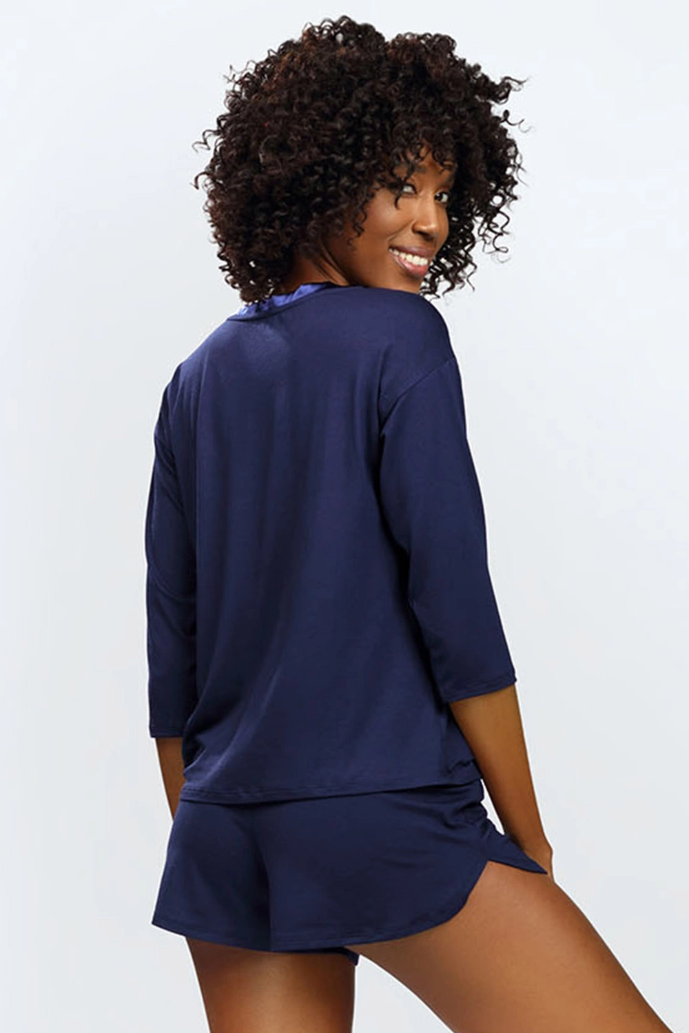 Dkaren Edith Nocna komplet koszulka + szorty, granat