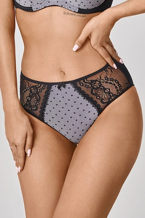 • przód z czarnej koronki i dzianiny w kropeczki