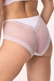Klasyczne figi o wyższym stanie zaprojektowane z myślą o codziennym komforcie. Elastyczna talia miękko dopasowuje się do sylwetki i pracuje z ciałem podczas ruchu. Przód i tył mają gładką powierzchnię bez nadruku, co ułatwia łączenie z różnymi stylizacjami i zmniejsza ryzyko odznaczania pod ubraniem. Pełniejsze krycie z tyłu zapewnia poczucie swobody na co dzień. Delikatnie elastyczna dzianina jest przyjemna w dotyku i sprzyja oddychalności. Wykończenie nogawek zaprojektowano tak, by komfortowo leżały na udach. To sprawdzony wybór do pracy, na co dzień i wszędzie tam, gdzie liczy się wygoda bez rezygnowania z estetycznej, dobrze układającej się bielizny. Model stanowi praktyczną bazę w garderobie i dobrze współgra z większością biustonoszy. Neutralne wykończenie i klasyczna linia sprawiają, że figi łatwo dopasować do indywidualnych preferencji.