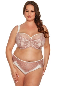 - wykonane z różowej koronki oraz gładkiej dzianiny i siateczki