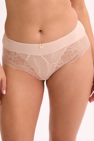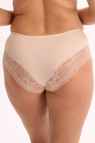 Zmysłowe figi z lekko podwyższonym stanem. W całości wykonane są z kuszącej koronki. Przód podszyty jest bawełnianą dzianiną. Z przodu delikatna kokardka. Dzięki swojej konstrukcji oraz zastosowanym surowcom figi idealnie układają się na sylwetce.